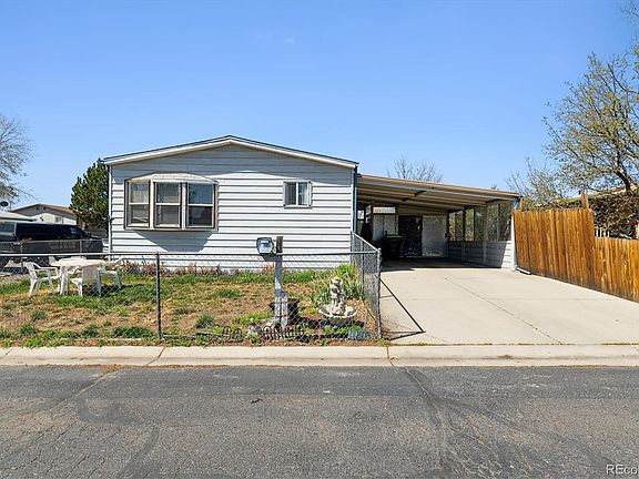 Riverdale Farms off 88th and Welby Road. This 3 bedroom, 2 bath manufactured home comes with the land. You own home and land. No lot lease in this community. There is 1440 sq ft to this home. Open concept with all rooms being generous in size. This home sits on a corner lot, in a quiet community. Colors are neutral and easy to work with. Carport is spacious. Two cars can fit in carport and one additional on the driveway. HOA is $60 a month. There is a community center you can reserve and use for large events. This home is near light rail and bus stop. Less than a half mile to light rail. Less than a quarter mile to bus stop. This home is being sold "as is".