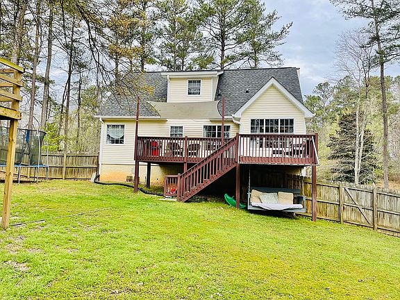 Great 3 bedroom/2.5 bath home on 1.98 acres. One street neighborhood w/easy access to I-20, Arbor Place & Douglas Hospital. Home features rocking chair front porch, spacious great room w/stacked stone fireplace, hardwood floors, & master on main. Spacious kitchen w/ two toned painted cabinets & breakfast area. Wood deck overlooking private fenced back yard. Two car garage. This home offers privacy & relaxation but the benefits of being close to all you need. Great place to call your new home! Upgraded with stainless steel appliances and granite countertops! Master bath is a must see! Free standing tub and two shower heads in a gorgeous tiled large shower. Master also has a walk in closet and vanity with 2 sinks. Basement is finished with drop lights on a dimmer and barn doors! Spacious two car garage with work area. Roof is 5 yrs old and HVAC is 6. Septic