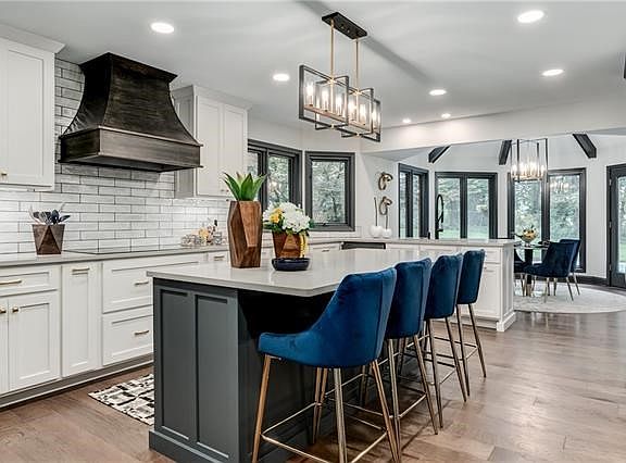This Stunning 1.5 story home will amaze you from the moment you enter! The traditional exterior of this home combines perfectly with the modern updated interior of this gorgeous gated community home! It's been completely renovated from top to bottom, starting with kitchen that features custom made cabinets, island, beverage bar area with 2 beverage coolers, and all new appliances w/induction cook top and eat in area. Laundry room and drop zone off kitchen that will amaze you with it's custom cabinets & built in shelving you won't mind doing laundry... The living room/great room will stun you from the new wood floors throughout, 18 foot ceiling, beautiful updated fireplace flanked by floor to ceiling windows giving a beautiful view of the beautiful back yard with in ground pool, to the custom bar and gorgeous new lighting throughout. The master bedroom/master bath on main level have been redone to give you two walk in closets, double vanity and a shower you will die for! Finishing off main level is office/study and formal dining room both redone with wood floors and beautiful new trendy lighting. The lower level with a second full kitchen and plenty of space to spread out is perfect for entertaining also possibility to add 5th bedroom. 3 large bedrooms upstairs plus a bonus room off one of the bedrooms could be finished off or used for storage. No neighbors behind you ever, fenced yard, 3 car garage and so much more! Seller wants to sell!!! Bring your buyers!!