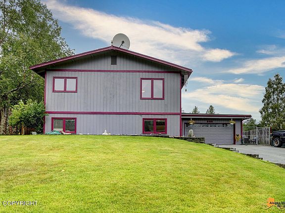 Breath-taking views of the Chugach mountains, this 4 Br, 2 Ba, 2 Car gar, split level home features a spacious kitchen, SS appliances, a rock FP, W/D, & a large living area upstairs & downstairs. This home also has newer exterior paint, 2 storage sheds, a huge 648 sq. ft. gar, a 7394 sq. ft lot, & plenty of RV parking for your toys! Sellers are offering to pay $3000 of Buyer's closing costs!This home also has a Bonus room that can be used as a 5th Bedroom.