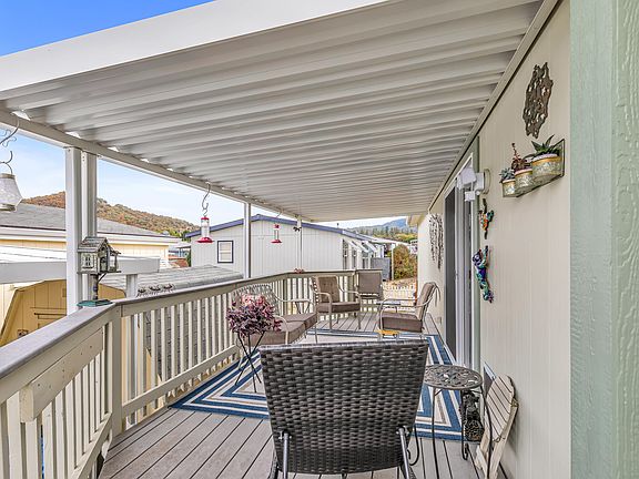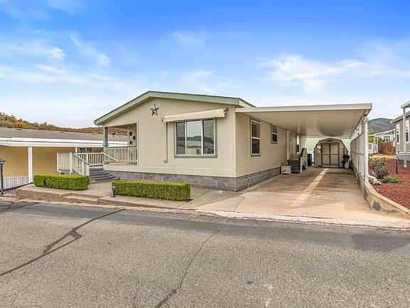 One of the Lowest Park rents for a 55+ Community in our area at $610 a month. Need RV or Boat Storage? Available for an additional $25 a month. This home is worth seeing, one of the best homes on the market. Spacious floor plan, states 2 bedroom but nicely sized office could easily be a third bedroom. Having company for the Holidays? Plenty of room in the kitchen for everyone and all appliances have been replaced in the last 6 months. Also new flooring throughout, upgraded shades throughout the home inside, and outside an automated awning and shade screen outside the living room to keep the home cool in the summer. Beautiful views of the mountains throughout the many windows in the home. Walk in closet in the spacious master with built in shelves and additional storage in the master bathroom. This home is beautiful and immaculate throughout. Need a small shop? The shed is insulated and sheet rocked with electrical already installed. Only 1 mile from the Gold Hill exit on I-5