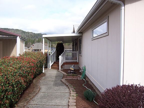 Much desired Madrone Hill MH park. Check out this beautiful & quiet 55+ park located approx. 1 mile to the Laurel Hill Golf Course, close to the Rogue River & only a short distance to I-5 access. This quality home is situated in one of the best locations in the park, with a huge covered rear deck overlooking open space/fields with gorgeous views, private & great for entertaining. This 2006 built 3 bedroom/2.0 bath home includes: vaulted ceilings, sky-lites/solar tubes, tall windows with tons of natural light, Large open kitchen with hardwood cabinets, breakfast bar & walk-in pantry. The vaulted dining & living room have easy access to the rear deck. Nice size utility room with room for an extra frig. Guest bedroom #1/den located off the front entry with French doors. Large vaulted Master bedroom with closet, Master Bath with double walk-in closets, Dbl-sink vanity, jetted tub & separate 4' stall shower. This home has Hardi-Plank siding, carport, Stg-shed & covd front entry porch.
