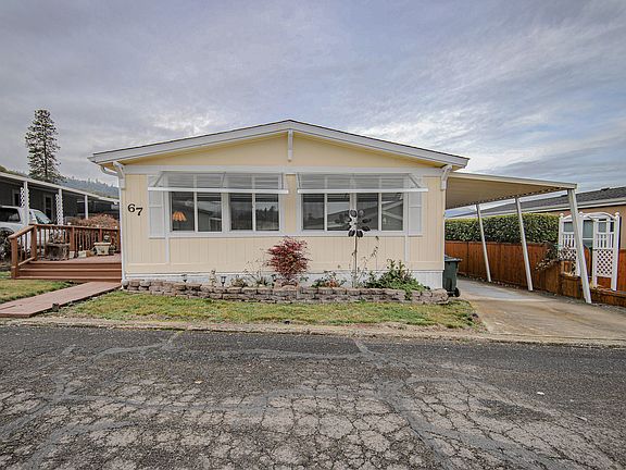 This 1344 square foot mobile / manufactured home has 3 bedrooms and 2.0 bathrooms. This home is located at 8401 Old Stage Rd UNIT 67, Central Point, OR 97502.
