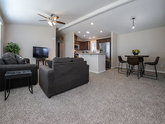 Don't miss out on this beautiful 2020 Cavco home. It's the perfect size with 2 bedrooms and 2 bathrooms. Master bedroom has walk-in closet and master bathroom has a walk-in shower. Upgraded Black Stainless steel appliances accentuate the stunning kitchen with large island overlooking the living room. You can enjoy the mountain view from your large front deck. Come see it now, this one won't last.