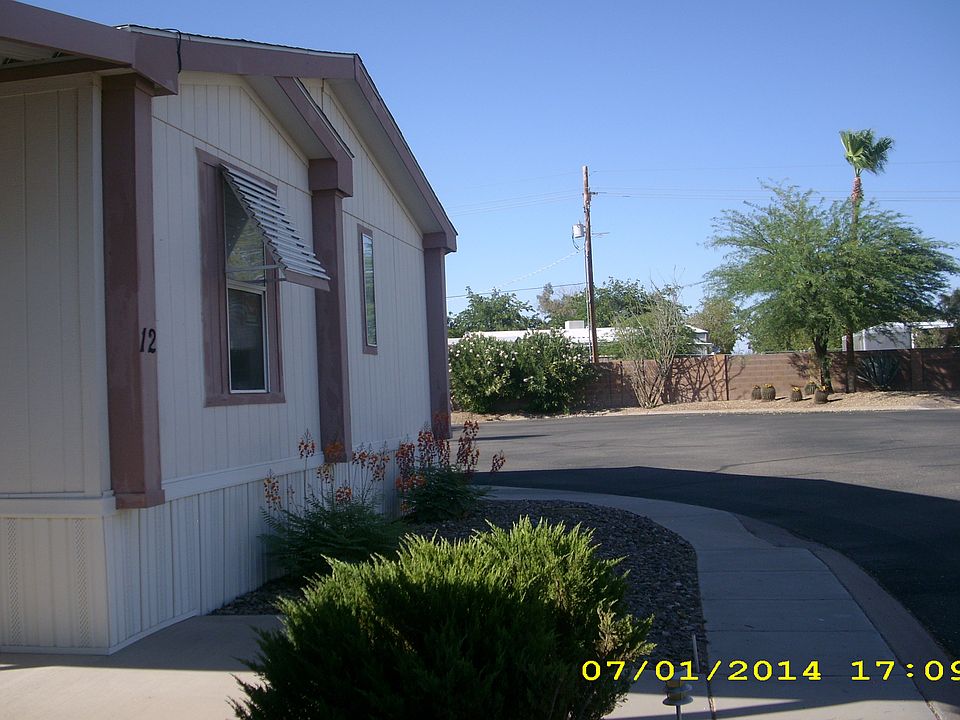 Wonderful manufactured home in an over 55 park. Light and airy . Laminate wood floors throughout, new AC A coil and termite protection done in 2015 and 2016. Terminex transferable contract. New kitchen faucet Oct 2016 with 2 year parts and labor transferable warranty. Split floor plan, 2 smaller bedroom and bath one end, master suite other end. Low maintenance yard. 2 sheds, one with AC and power. Large kitchen with breakfast room, separate laundry room, dining room, living room. Excellent for those tired of the snow and ice elsewhere. Lots to do in the clubhouse, which was renovated in 2015, and a new activity room is being installed this summer. Heated pool. Small grocery, hotel and RV space for friends in the Voyager next door. Lot rent plus water, sewer, garbage and gate keeper fee comes to approx. $525. per month depends on your water and sewer usage, this is a premium lot on cul -de- sac with just one side neighbor. This also can be moved elsewhere to your lot. Please contact Kent Lash for more information, 520-591-9511.
