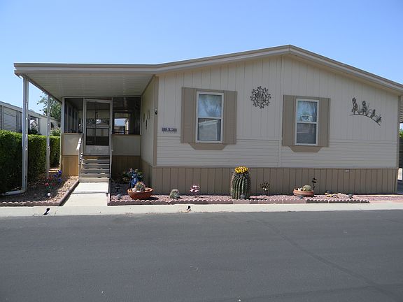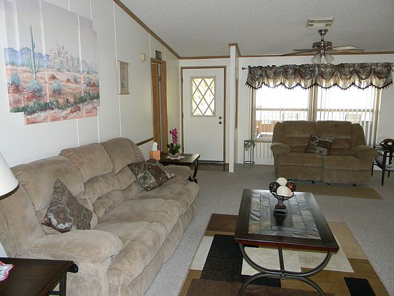 Absolutely stunning Palm Harbor 26x68 3 bedroom, 2 bath double-wide situated on a quiet street in our 55+ active adult mobile home park. This home is close to all the activities centered around our clubhouse. If you like keeping busy all the time, you’ll love living here. There’s always something going on here. This 1768sqft. home has everything you would like in a lovely, high quality mobile home. A few of amenities include: · Oak wainscot with matching chair rail in dining room area · Beautiful Berber carpeting in living room and guest rooms · Large laundry room with folding table, desk and utility sink · Wood laminate floors in master bedroom and kitchen · New step-in shower in newly remodeled master bath · Dual sinks in master bath · New “dual pane” vinyl energy saving windows throughout · Ceiling fans throughout the home · Custom security door on front entry · (2) storage sheds and concrete driveway