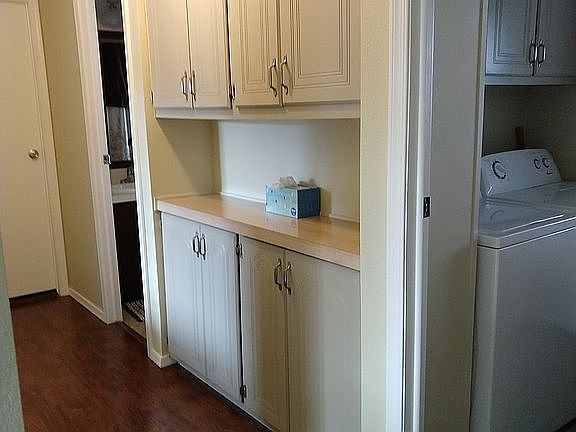 Leased Land. Has laminate flooring throughout. Exterior and interior paint and repairs 2020 & 2021. Has a 9x28 deck with solar screens. All appliances purchased in 2015-2016 along with dual pane windows. The roof has been replaced by previous owners and a water softener installed. There is a 10 x 12 shed. Nicely landscape, low maintenance. Corner lot with tandem carport. "Base" lot rent is currently $545/month includes water, sewer, trash and 24/7 guarded gate fee.