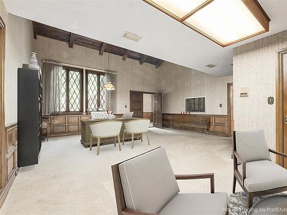 One or more photo(s) has been virtually staged. The majesty of the winding, tree lined driveway is only rivaled by the breathtaking home that comes to light at its end. With a timber and stone facade graced by large diamond pattern casement windows and flagstone storybook entry, this stately Tudor revival manse is unlike any you will find in Gainesville. The grandiose interior boasts a ballroom-sized main living space with a hammerbeam-inspired two-story ceiling, magnificent stone fireplace, and extensive custom handcrafted woodwork reminiscent of centuries-old European buildings. As you walk through the home you will see a mix of old-world and more modern styles woven seamlessly from room to room. The downstairs primary suite, which itself is nearly the size of a small home, is the perfect example of this juxtaposition, mirroring the features of the main living space yet modernized with a large en-suite bath and cavernous closet. The remainder of the downstairs living areas are equally large, with formal and informal dining, flex room with wet bar, oversized office/bedroom, kitchen, pantry/laundry, a full pool bath, a half bath, and sauna. When you walk up the grand staircase to the upstairs balcony you will be greeted by three bedrooms: two with a shared bath and one gargantuan one that was previously the primary suite. The entire upstairs overlooks either the exquisite living room or the sparkling pool and surrounding 5.5 wooded and beautifully landscaped acres. In this serene environment you will feel as if youve stepped into the country yet you are situated in the heart of the city, only a block from Haile's shopping, dining, and medical facilities and minutes to UF and Shands, yet free from an HOA or other restrictions. Whether you are seeking to add your own touch or enjoy it in its current splendor, you are sure to love this one-of-a-kind stunning home. *One or more photos are virtually staged. 2022-08-10