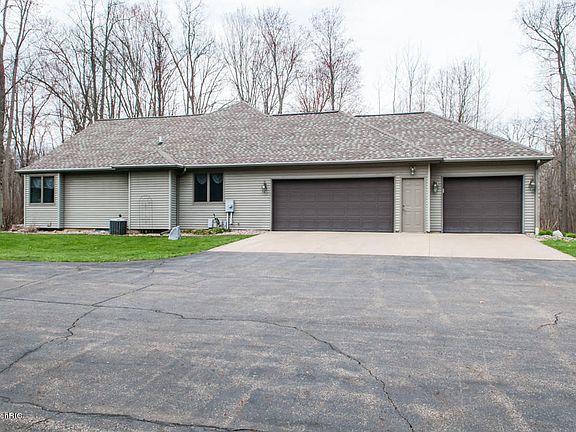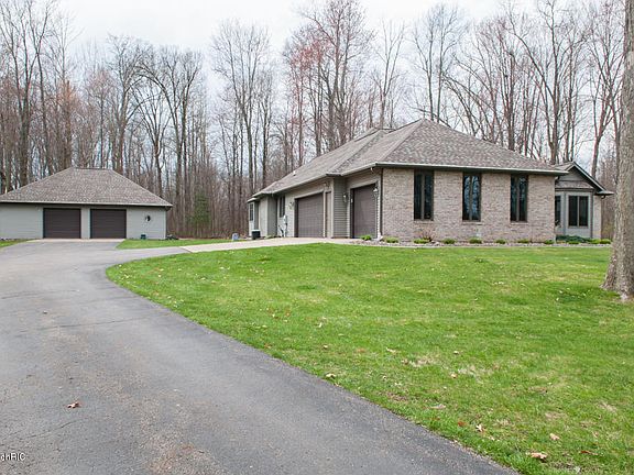 Absolutely Beautiful Ranch Style Home on 5 Acres. Bruce Hughes built home has quality and pride of home ownership throughout. Spacious and open living room / dining room with wood burning fire place, hardwood floors and ceramic tile throughout. Large open kitchen with Kraftmaid cabinets, newer appliances and eating area. Master suite with tray ceilings, two walk-in closets, spacious master bath with soaker tub. 2 bedrooms with jack-n-jill bathroom. Spacious finished walk-out basement (40x42) day light windows, recreation area, full bath and workout area. Exterior features include 5 acres of mature woods, large yard, beautiful landscaping and 30x40 pole barn. Do not miss out on this one of a kind home.