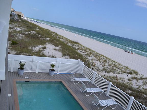 FILMED FOR HGTV. THIS IS THE MOST INCREDIBLE BEACH FRONT HOME on the Gulf Coast at this price. Nothing like it anywhere. Built to all the latest codes in 2014.Feature sheet is attached to photos. One of only a hand full of gulf front homes with a private pool. The pool serves as a seawall to protect the house. NOT IN A FLOOD PLAIN. 4 bedrooms and 4.5 baths with elevator fits every ones lifestyle all on 2 floors. * Two giant rear gulf front porches for Awesome Views * You will need to take the tour attached to photos to see many of the features not listed here. ELEVATOR TO GULF FRONT MASTER SUITE ACROSS THE ENTIRE 2nd floor. Sold Fully Furnished and ready to live in. Located on the quiet end of the beach with very low occupancy. Trex wood decking, PVC fencing, dunes walkover off pool deck