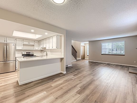 Timbercove II is an active and friendly established community. This townhome is right across 84th Ave. from Arvada Volunteer Fire Fighters Park. 1095 sq ft of beautifully designed living space 2 bedrooms, 1.5 baths, 1 car attached garage, front porch patio Gas fireplace in the living room Dining room and kitchen breakfast bar New flooring throughout including luxury vinyl plank floors in main level New carpet in upstairs bedrooms and hallway New paint throughout the house Updated kitchen with remodeled kitchen cabinets and new backsplash New stainless-steel appliances - dishwasher, refrigerator, stove/oven New washer and dryer New quartz countertops in kitchen and bathrooms Updated bathrooms with new sinks, vanities and toilets New lighting fixtures throughout Owner pays HOA which includes water and trash removal. Tenants pay gas and electric. No pets, smoking or vaping allowed