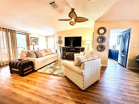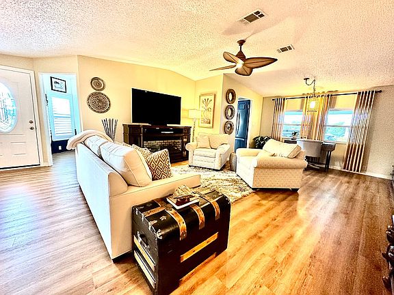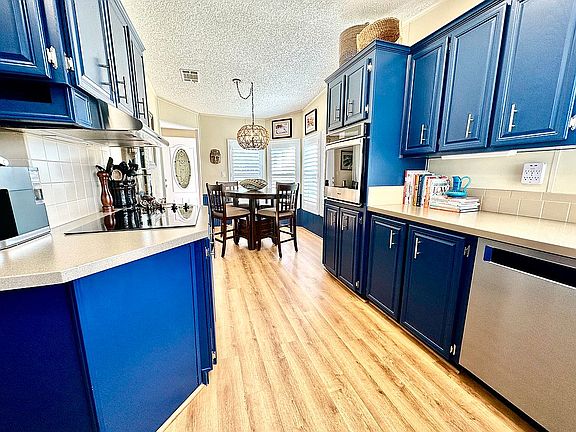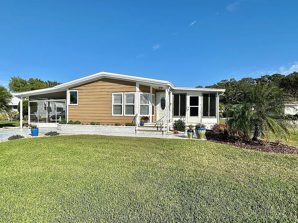 Pack your suitcase and move in! This home is being sold completely furnished including kitchen items. Most of the items in the photos are included with the home. Please contact the owner regarding which items stay. This is a highly sought after 55 + community. Yearly HOA fee is $1936 which includes Spectrum TV with high speed internet, 2 pools with spas, pickleball/tennis courts, and shuffleboard. The 12,000 square foot clubhouse has a full kitchen, library, pool room, dance floor and stage with an on-site manager. This home was remodeled in 2019 and includes all new appliances along with LG washer/dryer. Lanai has all new flooring and new windows. New double paned windows throughout. Residents own their home and property so there is no lot rent.