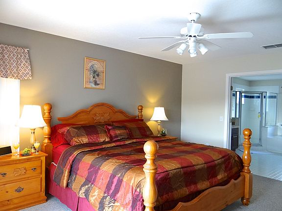 This fabulous home is set on the waters edge of Sunset Lakes, with fabulous south views of lake from the south facing pool screened area with covered lanai, upstairs balcony from the master bedroom overlooking the lake. The home was refurbished in September 2014 - Repainted interior and exterior, new carpeting, new furniture, new A/C unit and pool heater, pool resurfaced, bathrooms upgraded, new kitchen. Home has a games room in the garage and has an excellent history of bookings. Shops and Disney theme parks very close.