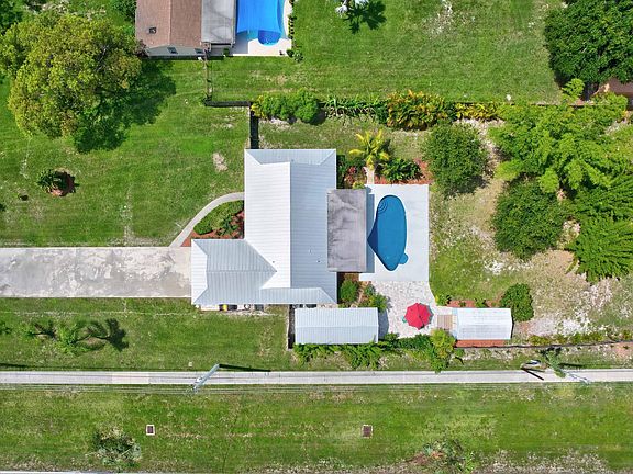 Lovely 3 bed/2 bath Key West style pool home on a 0.68-acre corner lot! Split floorplan, open living spaces & tons of updates. Beautifully remodeled kitchen w/ eating bar flows into the formal dining space & outside to the large screened patio for year round indoor/outdoor entertaining. Large master bedrm suite w/ walk-in closet & en-suite bath. Metal roof & impact windows & doors throughout. Newly resurfaced salt-water pool w/ heating & cooling features. Stamped patio & large shed w/ power in the backyard. Fully fenced, lush & private backyard boasts a variety of tropical vegetation, incl. painted eucalyptus, traveler palms, several bamboo varieties & numerous young fruit trees - banana, cherry, lime, key lime, grapefruit, orange & coconut. 2 car garage, carport & tons of driveway parking