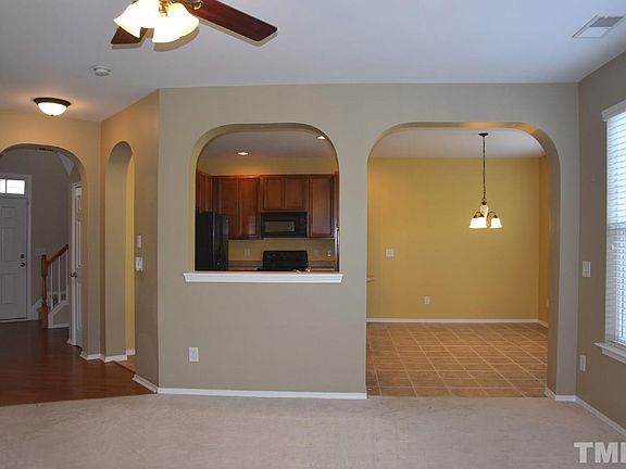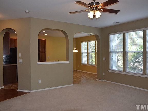 Move in now to this spacious NW Raleigh 3 bedroom detached townhome with separate 1st floor office and 2 car garage in Leesville school district. New carpet just installed. Casual dining area and kitchen open to family room with gas log fireplace & door to secluded rear patio. Luxurious upgrades in renovated master bath include neo-angle frameless shower with Carrara marble-like tile, wall niches and shower seat, tile flooring, vanity plus huge walk-in closet. No pets/no smoking. Convenient to RDU & RTP!