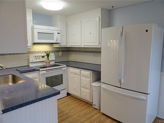 Come check out this awesome Townhouse today! All newer kitchen appliances, corian solid surface counters, laminate floors, and the back splash is beautifully done. This is just what your looking for and move in ready. Very close to Liverpool schools, highways, and shopping. Screened in porch/deck and fenced in yard is for your complete enjoyment for entertaining or just relaxing. Storage is not a problem, including walk in closet in master bedroom. Surround sound is installed and ready to hook up and enjoy. Check out the extras for the buyer -Two upstairs flat screen mounted TV's in the spare bedrooms, 1 blue ray player with remotes, wheel barrel, washer, dryer, and lawn mower. Don't miss out and see it now! Why rent when you can own and live close to everything you need.