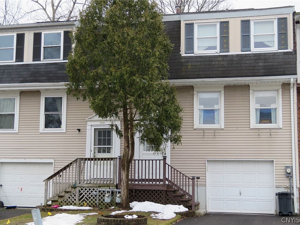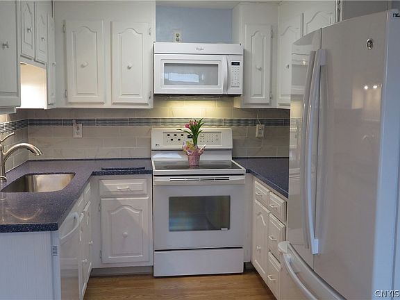 Come check out this awesome Townhouse today! All newer kitchen appliances, corian solid surface counters, laminate floors, and the back splash is beautifully done. This is just what your looking for and move in ready. Very close to Liverpool schools, highways, and shopping. Screened in porch/deck and fenced in yard is for your complete enjoyment for entertaining or just relaxing. Storage is not a problem, including walk in closet in master bedroom. Surround sound is installed and ready to hook up and enjoy. Check out the extras for the buyer -Two upstairs flat screen mounted TV's in the spare bedrooms, 1 blue ray player with remotes, wheel barrel, washer, dryer, and lawn mower. Don't miss out and see it now! Why rent when you can own and live close to everything you need.