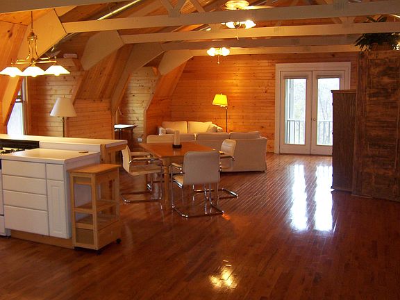 Excellent schools, privacy and waterfront. Change Your View - & Your Life This is a beautiful two-bedroom, second-floor, water's-edge, 1250 square foot barn-loft home - an open space, unique, rustic, tranquil, private, country loft-home with a lower level attached garage tucked-in off a country road on a small lake. Yet you are just 10 minutes from the NW Train Lines and all the conveniences of Crystal Lake as well as the excellence of the Prairie Grove school system. This open-floor-plan two-bedroom home occupies the entire second level of a renovated horse barn and has a dedicated 10' x 30' garage bay directly below.. The home has historically housed one or two individuals, has cathedral ceilings, plenty of large windows and is tucked-in next to woods and a small lake. The walls and cathedral ceilings are knotty pine; the floors are beautiful hardwood oak. This cabin-like home has a full kitchen, full bath, natural gas forced-air heat, four large attractive ceiling fans, dishwasher hookups, two sets of large French doors, central AC and a dedicated 150 square foot laundry and storage room on the first level with utility tub, washer and dryer. The monthly rent for the two-bedroom home - including the lower level one and 1/2 bay garage is $1900 plus gas & electric. Available immediately. The barn-loft home is part of a family compound that sits on 3.3 acres with a small lake and is surrounded by 1,000 + acres of forever wild and farm land. This property is very secluded and private in all directions. All this living space and privacy is just 10 minutes from the Northwestern Train line and downtown Crystal Lake. No Pets. No Smoking. The security deposit is one and one-half month's rent. Inquire for additional details and/or to schedule a viewing.