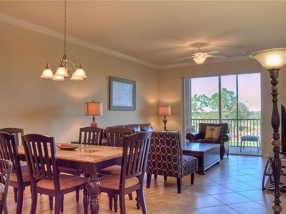 (Not available for season) Located inside the River Strand community, this Bradenton vacation townhome is only 20 minutes from incredible Gulf Coast beaches. This updated vacation home is very spacious with an open floor plan. When walking into the unit you have an updated kitchen with granite countertops and stainless steel appliances. The kitchen is fully equipped to give you everything you will need to prepare a meal and enjoy the feeling of being in a home. The open floor plan connects the breakfast bar dining room table and the living area making it so you have great golf views from almost anywhere in the property. With the amazing views on the lanai you will spend lots of time enjoying the great weather as well as the great scenic views. The first bedroom and guest bathroom is located in the front of the home on the right hand side. The first bedroom has two twin size beds and a 32' flat screen TV. The washer and dryer is located in the guest bathroom in a closet still making it spacious.The master bedroom is in the back of the home leaving a large window showing the same view from the lanai. The bedroom is equipped with a king size bed and a 32' TV.