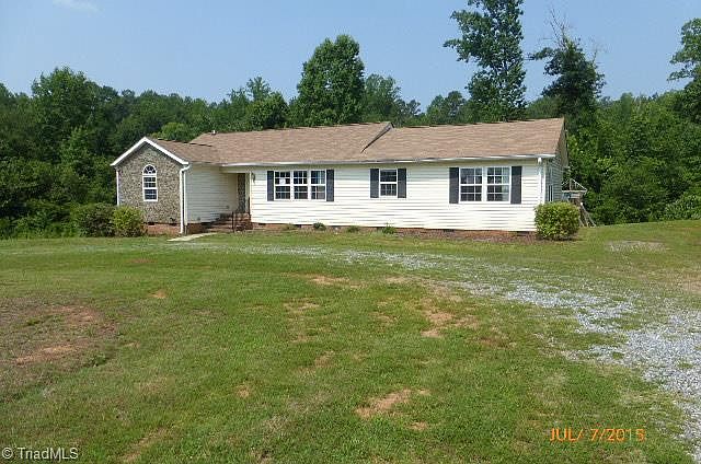 Summerfield Ranch moved in 2001 to this lot in Haw River Farms and remodeled in 2005. 8.8 Acres+- possible subdivide/three bedrooms/two baths/bonus room/lg kitchen/huge master suite w walk in closet/knotty pine living room. Seller requires purchaser to obtain a Caliber Loans Pre-Qual letter PRIOR to accepting an offer for any non-cash transaction (please see agent only for Caliber contact info). $1,000 Certified EM, sales addenda will follow approved offer and SOLD As-IS.