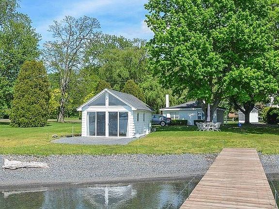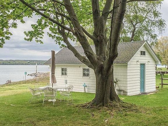 This charming 3-bedroom, 1-bath cottage comes with a converted boat house for extra sleeping space! Located on a level lot at the end of a private, one-lane road, this home comes with 67' of private beach, a permanent dock with boat lift, and excellent swimming! Lodi Point State Marine Park is directly next door and provides a kids' playground as well as lots of extra lawn and beach! The kitchen has modern appliances, including a dishwasher. The modern bathroom has ceramic tile and a double shower. The rooms are spacious and bright, the dining area has a fantastic view of the lake and the living room comes complete with a fireplace. The boat house is on the shore and is perfect for extra guests or shaded waterfront relaxation. Come ready to sit on the dock and enjoy lake life!