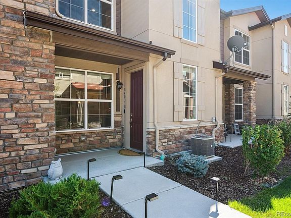 Price reduced, best value in the community!! Fireplace upgrade and rare private driveway! Ideally located with endless trails and access to outdoor activity, 8403 Rizza Street is light and bright zero-maintenance contemporary living in Highlands Ranch’s Hunting Hill community. Beautiful LVP floors, grand 10’ ceilings, curated finishes, and abundant natural light unfold to over 1,300 sqft of functional living and entertaining space. The electric fireplace in the spacious great room is the ideal spot to cozy up on cool Colorado evenings, which is just steps from the upgraded kitchen. Enjoy preparing a meal in the well-appointed kitchen featuring quartz counters, an oversized center island, stainless steel appliance package, 42” soft-close cabinetry with under-mount lighting, and a pantry. Upstairs, the private living quarters feature a spacious primary suite, complete with a walk-in closet and a four-piece en-suite bath with tile floors and a walk-in shower. A secondary bedroom includes an ensuite full bath and laundry, which round out the upper floor. An attached full sized 2-car garage with built-in storage and a full-size driveway offers additional off-street parking (most townhomes in the community do not have driveways!). Step out your front door and jump on the Highline Canal for miles of walking and biking trails. Hunting Hill is only minutes from endless shopping and dining, award-winning Douglas County Schools, access to major roadways, and Chatfield Reservoir. This property is ready for its next chapter; all it needs is you!