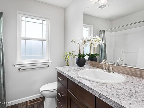 Perfectly designed living space on one level, meticulously maintained zero lot line home in highly desirable West Valley community. Spacious open floor plan with lots of windows, rich wood cabinetry, and durable vinyl plank flooring, plus carpeted bedrooms. Stainless steel appliances, including gas range. The primary bedroom has a full bath with dual vanity and a walk-in closet. Fenced yard with underground sprinklers and covered patio. No smoking. Tenant responsible for utilities