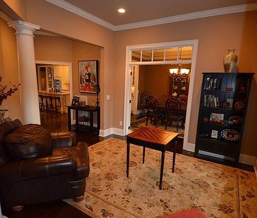 Beautiful home built by Richard Compton located in the center of culdesac, on 3 acre wooded lot. Welcoming foyer that opens to formal dining and sunken great room. Music room/sitting area separates the space with gorgeous columns. The great room has coffered ceiling and FP with gas logs. Gorgeous kitchen with paneled refrigerator, stainless steel appliances, and granite countertop, convection/conventional oven, built-in shelving. Butler's pantry with ice maker. Large walk-in pantry.Fabulous laundry with builtins,counter space, & drop zone.Master bedroom has private screened porch, large closet with custom shelving. 2nd bed on main with private bath. All upstairs beds have private baths as well! 2 flex spaces upstairs with tons of floored attic storage and great heatd/cooled storage as well. Home wired for surround sound. Spacious deck is Trex decking with gas line for grill. Oversized 3 car garage. Beautiful backyard with mature trees. Less than 6 minutes to Publix!