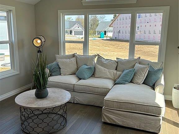 The Kalkaska with front porch, three car garage, sunroom and loft. Home features great room with 10 ft. ceilings, transom windows, gas fireplace and crown molding. Kitchen with painted cabinets, quartz countertops, center island, and pantry. Sunroom with cathedral ceiling, and circle top window. Master suite with pan ceiling, double bowl vanity, custom tiled shower with euro door and walk in closet. Loft with door to storage over the garage. Three car garage. Possession at closing.