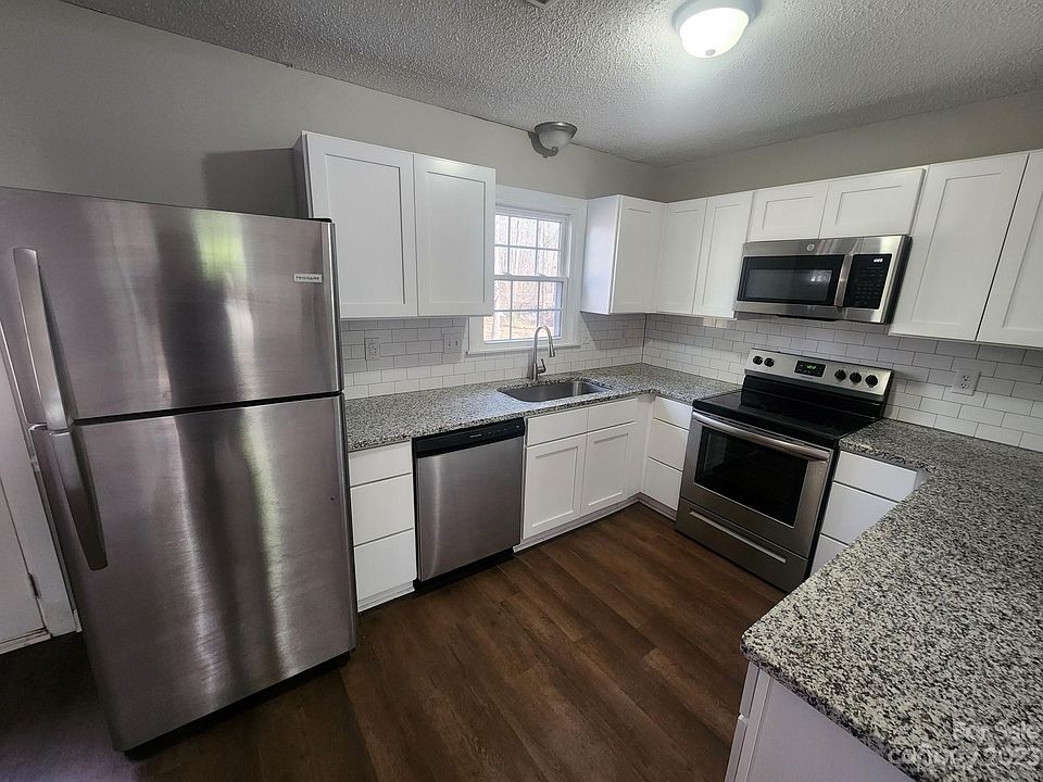 Ranch home in highly desirable Indian Trail. 3 bedrooms and 2 full bathrooms. This home has it all and a great split bedroom floor-plan. New vinyl siding and shutters (2022), New Roof (2022), New Black Gutters with Gutter Guards and Downspouts (2022), HVAC (Trane system 2017) and Windows recently updated. Interior has new (2022) Waterproof LVP flooring throughout. Fresh neutral paint throughout. Kitchen with new (2022) white shaker soft close cabinets, granite counters, tile backsplash and SS appliances (2022). Updated lighting and plumbing fixtures. New vanities in the bathrooms. Freshly painted decking, storage closet outside and wooded lot. Fireplace sold as-is. Great location close to great restaurants, 485. Private lot and street. Very desirable location.