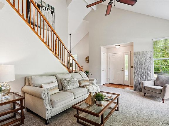 Welcome home to this spacious townhome in Littleton, located in the gated community of Meadow Ranch. You finally found it: easy low maintenance year-round living or a fantastic lock-and-leave opportunity for 2nd homeowners or travelers. Once you enter the home, you will see where comfort meets style, featuring vaulted ceilings, modern colors, and decor. The cozy living room has a gas log fireplace, natural light pours in through large windows, and a sliding glass door leading to the spacious patio with room for furniture and your grill!! The adjacent dining area flows into the beautifully updated kitchen, boasting gorgeous white cabinetry, granite countertops, an island, and stainless steel appliances; it's a chef's dream! You'll find a convenient bedroom, an updated full bathroom, and a laundry room on the main floor. The primary retreat awaits upstairs, with vaulted ceilings, a huge walk-in closet, and a luxurious 5-piece bathroom featuring a soaker tub. The flex room upstairs offers a versatile space for a home office, exercise space, and cozy reading room; the options are endless. The finished basement, with brand-new carpet and paint, provides even more living space. It could also be a 3rd bedroom as you'll find egress windows and a closet. This floor finishes out with a 3/4 bathroom and extra storage. Enjoy well-maintained grounds and tree-lined streets; what a prime location close to shops, hiking and biking trails, restaurants, entertainment, Chatfield Reservoir, Lockheed Martin, and easy access to C-470 for mountain adventures. This townhouse is a gem in a highly sought-after area! NOTABLE UPDATES: Kitchen, main and upper-level bathrooms remodeled, near new (2023) variable speed furnace and 30-ton central air unit, water heater replaced in 2017, brand new carpet in the basement, and a fresh coat of paint on the walls, new interior paint in living, dining, and hallway up the stairs, and in the upper-level flex space, hallway, and walk-in closet.