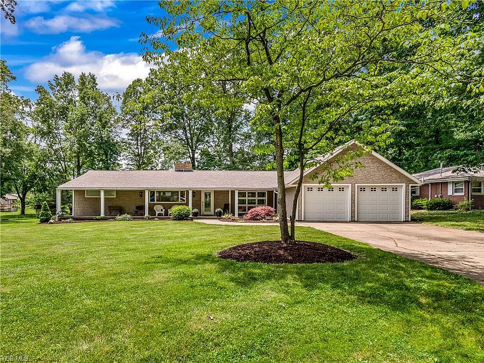 This is the ranch home you've been waiting for! Nestled perfectly in a park like setting on a dead end street. You'll be impressed with the large great room with vaulted ceiling, and open concept with the kitchen. The kitchen has been updated and features stainless steal appliances, ceramic tile floors, kraftmaid cabinets, and a neutral counter top. The family room has a large picture window, fireplace, and new flooring through out. Three large bedrooms and a full updated bath round out the first floor. The lower level has a nice size rec room perfect for entertaining. Enjoy summer evening sitting under the covered front porch or out back on the deck over looking the .61 double lot. Newer roof (2018)! This home won't last long! Call for your private showing today!