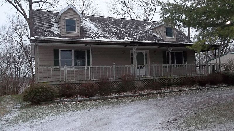 Two story home located on 1.19 acres with three quarters wrap around porch. Great view setting on porch watching kayaking and just walk away from evening fishing. Home has three bedrooms and one and one half baths. Large two car garage. Home located approx. one mile from Paint Valley Local Scool District.