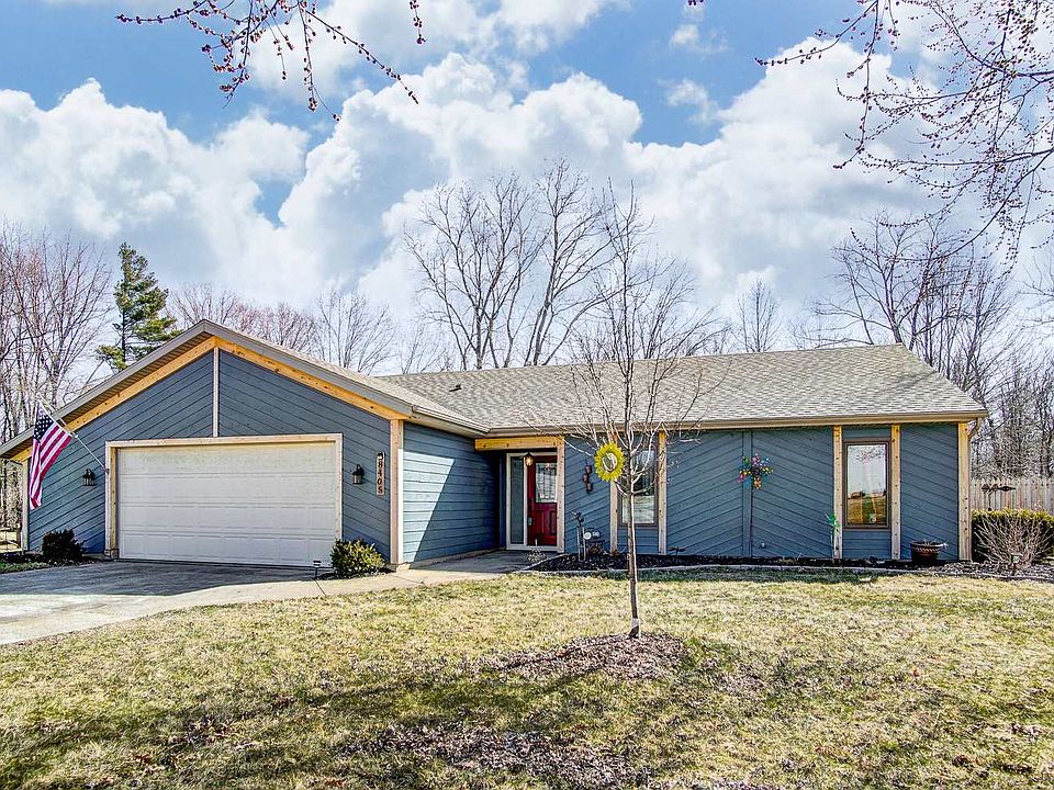 You won't believe the updates and transitional décor in this stunning ranch home located in the heart of Aboite and SWAC schools. Open concept home with complete kitchen remodel and fresh paint welcomes visitors immediately with wood ceilings and vaulted great room with skylight and floor to ceiling fireplace. Kitchen has quartz countertops, under cabinet lighting, soft close dove-tail drawers, mixer stand, loads of pull out shelves, boxed out window, and stainless steel appliances. Master suite with walk-in closet, updated full bath with vaulted wood ceiling and skylight make mornings even brighter. Two additional bedrooms with all closets lighted, including the huge hallway closet for games, suit cases and other storage needs. Main bath with linen closet, updated vanity and solid surface countertop. The home has been well maintained and has the following newer features: Andersen windows, roof, garage door, fascia, soffit, and gutters. The views are amazing on this cul-de-sac lot with woodland views and fenced backyard. Landscaping has been updated, completely surrounding the home with easy to maintain plants and shrubbery. Raised garden bed lets you make the most of summers bounty.
