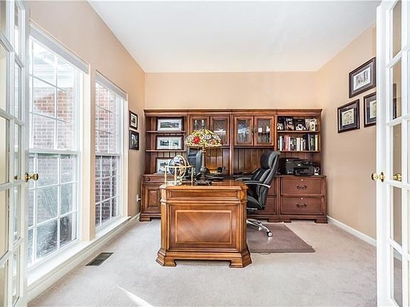 Spacious brick-front home with A+ location in Parkes Farm Estates. Easy access to SF school campus, I79, Rt 50, shops, dining & more! Greeted by a 2 story foyer, private office through French doors, formal Living room & spacious dining room ideal for family dinners. You'll love the large Family room with gas FP that opens into a spacious Kitchen with functional layout featuring HW floors, oversized island, new granite countertops & pantry + morning room with serene wooded views & access to deck. Large master suite boasts walk-in closet, sitting room & ensuite bath with jetted tub, walk-in shower & double bowl vanity. 3 addl spacious bedrooms with double door closets & secondary bath also located on UL. HUGE finished LL is an entertainer's dream! Equipped with bonus room perfect as a 5th bedroom, hobby or exercise room, full bath, bar, game room, storage space & living space. Long concrete drive leads to 2 car side garage with convenient main level access. Private end-lot too!