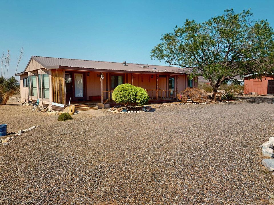 Welcome to this charming, manufactured home classified as real property with a deactivated title, located in its original setting. This delightful 2-bedroom, 2-bathroom residence offers a spacious living experience with both a living room and a family room featuring a cozy wood-burning stove. The open-concept design connects the living area to the kitchen and dining room, creating an inviting space for entertaining and everyday living. Enjoy the comfort of newer refrigerated air and heating system, alongside the convenience of a well and septic system, both installed in 2019. Home sits on 1.5-acres, this property is fenced, offering both a front and back patio for outdoor enjoyment. A handy shed provides additional storage, and the property is serviced by Columbus Electric. Stunning views of the Florida Mountains and enjoy the breathtaking night skies from the comfort of your own home. Don't miss out on this unique opportunity to own a piece of tranquility.