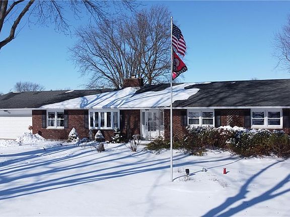 Country brick ranch w/ finished walk-out basement. Offers 4 bdrms, 2 full & 2 half baths, large rooms thruout, family rm has bay window, a wbfp w/ side oak cabinets, 2 sliders give access to the rear covered patio, 6 panel solid wood doors, abundance of closet storage, updated kitchen, all appls stay including w/d, LR bow window, master bdrm double walkin closets & private bath, 1st floor laundry rm means no carrying clothes downstairs. Must see the spacious finished basement w/ wet bar, billiard rm, workout area, 2nd FR w/ electric fp, bdrm & 1/2 bth plus a huge storage rm w/ shelving. Outside the landscaped lot is hidden by snow *Get ready for flowers & greenery in spring. There are apple/pear trees, raspberries/asparagus plus open garden space. 2 car attached garage & 32x24 det garage w/ work bench/cabinets/new overhead dr. Extras in this comfortable home: kit can lighting, stamped concrete patio, hot-tub, fire ring, 2 sump pump/battery backup & MORE! This home is a pleasure to see.