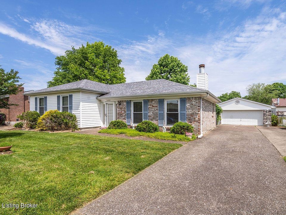 Welcome to this charming ranch house with 1330 square feet of living space! Step inside to discover beautiful flooring in the spacious living room, complete with a vaulted ceiling and a cozy fireplace for those chilly evenings. The eat-in kitchen boasts plenty of cabinets, a convenient bar area, and all appliances, including the washer and dryer, remain.This lovely home features three bedrooms and two full baths. The primary bedroom offers an ensuite full bathroom with a stunning skylight. You'll find ample storage space with plenty of closets. Stay comfortable year -round with ceiling fans throughout the house and vinyl-clad -tilt -out windows. Off the kitchen you will find a spacious screened-in porch to enjoy the outdoors. The backyard is fully fenced and includes a two and a half car garage along with a wide driveway for extra parking. Additionally, there is an attached storage room for your convenience. Don't miss out on the opportunity to make this your new home.
