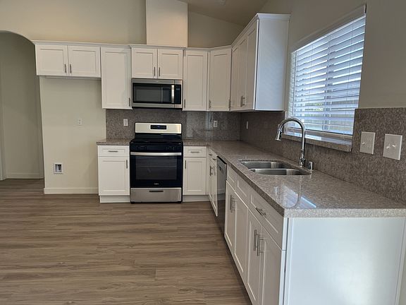 Brand New 3 bedroom, 2 bath duplex located in the Powder Ridge neighborhood near Snow Rd and Coffee Rd in Northwest Bakersfield. This home is brand new and it features luxury vinyl plank flooring, stone countertops and stainless steel appliances. There is a small backyard with a patio and 2 car garage. Washer and dryer hookups in the unit. Pets considered with each pet there would be a $50 increase in monthly rent and additional deposit of $250. We do not accept the Zillow application. DRE# 01810009