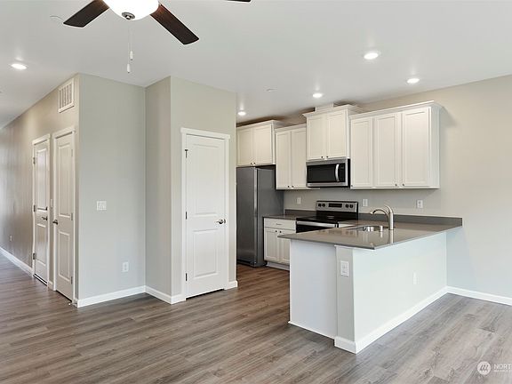 Now available in Arlington - the Alki floor plan! This stunning, brand new townhome features an open entertaining area throughout the living room & dining area. The kitchen is upgraded with quartz counters, 42” cabinets, & a full set of stainless steel Whirlpool® appliances. Luxury plank flooring, two-tone paint & recessed LED lighting create a beautiful design. Upstairs, enjoy a private owner’s retreat with a dual-sink vanity & walk-in closet, plus two more bedrooms & a second full bathroom. A finished garage offers storage space & privacy. If you are working with a licensed broker, please complete the Prospect Registration Agreement (*Site Registration Policy #4898) & submit prior to your first visit to the Gilman Walk Information Center.