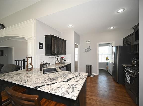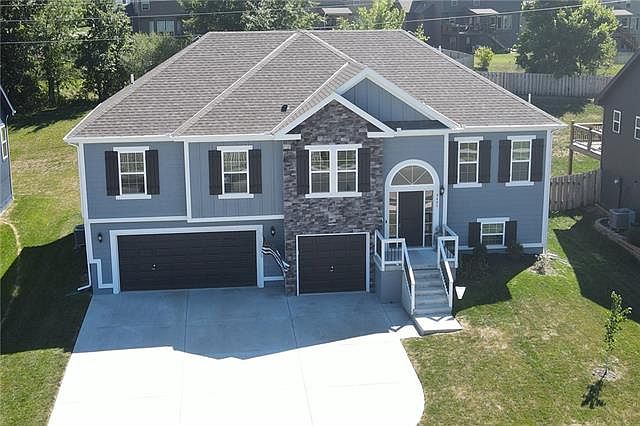 Contingency fell through! Back on Market! Beautiful home, it's CLEAN, it's light and bright, open floor plan, dinette area PLUS formal dining, awesome kitchen with granite countertops, stainless appliances, pantry & gas range, main floor laundry, nest thermostat, nest doorbell, three bedrooms on main level and one on lower level, (master on main level separated from other two bedrooms on main level), 3 full bathrooms, wood floors, awesome lower level family room providing space for large furniture plus dining area, convenient drop zone just off garage, covered deck, huge three car garage, spacious lot, great Liberty schools, Beautiful neighborhood, super convenient location and more! (Kansas City Address - Liberty Schools)