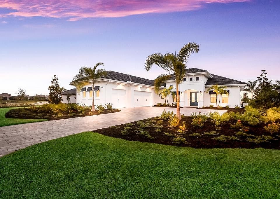 Spectacular oversized lot in The Lake Club at Lakewood Ranch, this stunning newly built 4-bedroom, 4-bath lakefront residence makes an impressive statement with a multitude of high-end upgrades and appointments, and completely designed and furnished by an interior designer including exquisite light fixtures, designer furniture, rugs, draperies, artwork and more. The 3,754-square-foot home was thoughtfully customized by its owners, who had expected to live in it before their plans changed after it was completed. Among the upgraded features you’ll find throughout the one-level home are wood plantation shutters, beautiful tile flooring, impact windows and glass doors, cabinetry, baseboards and paint. The open floorplan is perfect for entertaining, including a large well-appointed gourmet kitchen with Jenn-Air appliances overlooking the inviting great room with faux wood tray ceilings. The kitchen also includes a KitchenAid wine cooler and wet bar, butler pantry pass-through and pantry with wood shelving. Glass sliders in the great room seamlessly transition to the expansive lanai with a panoramic screen showcasing picturesque lake views and a custom saltwater pool with swim-out benches, a 6’x6’ raised spa, and LED color-changing pool and spa lights. The lanai is perfect for gatherings of any size with large covered and open spaces for dining and entertaining, a full outdoor kitchen with a wet bar and small refrigerator, 10’ fire box and a 43” gas fireplace with surrounding tile to the ceiling. The sumptuous master suite features a double glass French door to the lanai, tile and rug, and a bathroom with dual vanities, large walk-in shower and free-standing tub. The home also includes three additional bedrooms with upgraded carpet, dining room with recessed tray ceiling, study with added built-ins and French doors, and a bonus room with a shiplap wall. Other notable highlights include a smart home system with outdoor cameras, 8 Sony TVs (one outdoor), 4 Sonos plus woofer with smart surround sound, plus a 22 KW generator. The Lake Club’s fabulous amenities include a 20,000-SF clubhouse, fitness center with state-of-the-art equipment, resort-style pool with waterfall and separate children’s pool. Don’t miss this amazing opportunity to make this exceptional move-in ready residence your own.