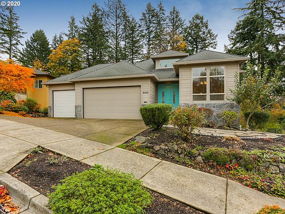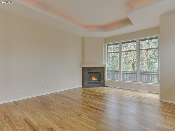 Lovely Dayranch! Master Suite on main: balcony, soak tub, WI Shower, dual sink vanity, WI closet. GREATROOM layout! Spacious Kit: soapstone counters, tile floor, large butcher-block isl, din area, dual fuel range, fridge, opens to liv rm w/gas FP, back-lit tray ceiling. High ceilings and Canary Hardwood Floors throughout (newly refinished main level). Office on main. Central A/C. 2 gas furnaces. 2 decks. Nice slate stonework patio. Backs to greenspace! [Home Energy Score = 5. HES Report at https://rpt.greenbuildingregistry.com/hes/OR10186783]