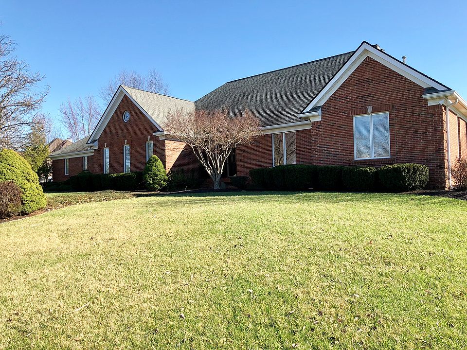 This immaculate one owner 3600sqft brick ranch sits on 1.2 acres in the Oldham County section of prestigious Estates of Hunting Creek. Featuring 3-4 bedrooms, 3 full baths and two half baths this home has a huge vaulted Great room with a wall of windows and stone fireplace with built-in bookcases. The gourmet kitchen offers granite countertops, custom cherry cabinets, hardwood floors, walk-in pantry, a big center island that seats 4 and a gathering area with wrap around windows and access to the covered brick patio with a vaulted cedar tongue in groove ceiling and skylights. The master suite has a tray ceiling with a private bath with whirlpool tub, walk-in shower, water closet and double vanity. The huge walk-in closet has access to the large laundry/mud room w/ big coat closet. Two nicely sized bedrooms with walk-in closets also have access to private baths and the 4th bedroom (currently used as an office) features custom wainscoting and a large closet. The full basement is ready to finish and already has a half bath and large workshop with built-in cabinets, multiple receptacles, and good lighting. A stairway walks out to the oversized 3 car garage. Meticulously maintained, well landscaped (with a sprinkler system), a generator connected to a six circuit transfer switch, a Prospect address without the taxes, maintenance free exterior and a cul-de-sac location in the award winning Oldham County school district—where your child goes to their neighborhood school offers you peace of mind.