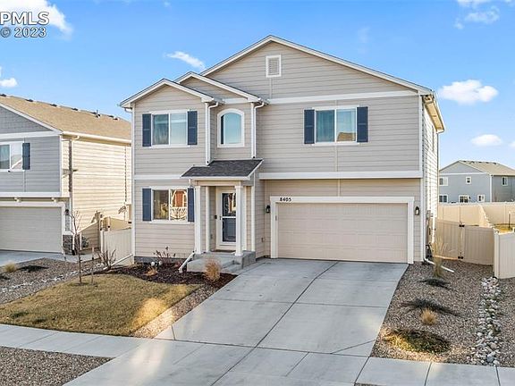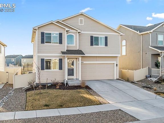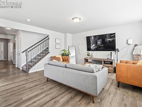 This remarkable home is centrally located in the Enclaves of Mountain Vista Ranch. Located close to shopping, restaurants, and military installations. On the main level of this home, you will find the main level boasts LVP, a flex space with French doors that is perfect for a home office, and an open concept living space. The kitchen is finished with beautiful granite, backsplash, stainless steel appliances, and hosts a perfect sized kitchen island. Upstairs you will find a massive loft. The primary bedroom has gorgeous mountains views. The primary also boasts an oversized walk-in closet, shower with a bench, and plenty of storage. Upstairs you will also find 2 generous sized bedrooms with walk in closets, a laundry room, and the second bathroom. Down in the fully finished basement, you will find the fourth bedroom, full bathroom, and wonderful entertaining space. The basement has been pre-plumbed for a future wet bar. As if this home couldn't get any better, it backs to open space, with a great sized fenced in back yard. Come by and fall in love.