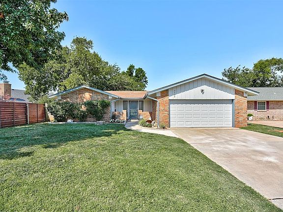 This lovely 3 bedroom, 2 bath home has been updated with interior and exterior paint; LVP flooring and carpet; double oven/stove, microwave & dishwasher; recessed lighting added in kitchen, dining and hallway; tile in primary bath, double-pane, low-e windows, sliding patio door and fencing. The Windsor Lakes addition is conveniently located near schools, shopping, dining and Lake Hefner.