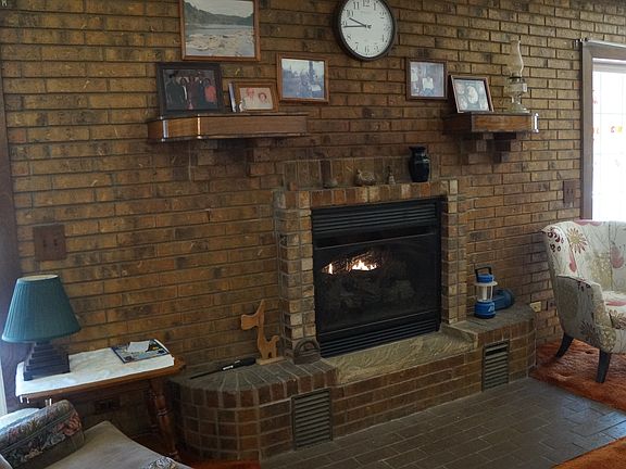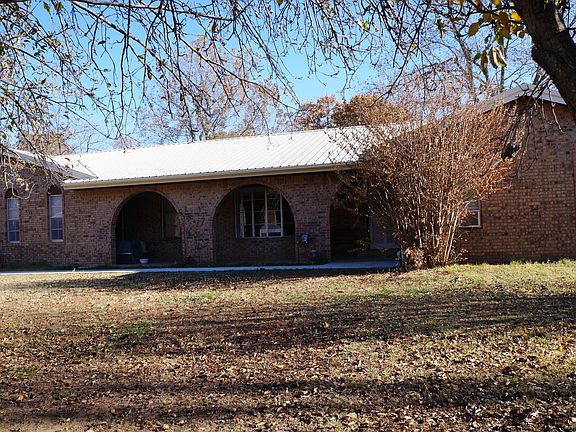 Home on 5 acres in the country!! 2200 sq. ft. brick home on 5 fenced acres with Ambler Steel building with remote control doors. House is wired for backup generator and generator will be included with full price offer. Gas log fireplace makes the two full living areas cozy. Double closets in each bedroom. Many built in shelves and cabinets for extra storage. Garage has been converted to large bedroom/utility room with private sink and separate entry. New wooden flooring in the kitchen. Large open patio in the back and storm cellar in fenced back yard. Pond in fenced pasture for horses or livestock with lots of mature fruit and pecan trees. Metal roof installed in 2008