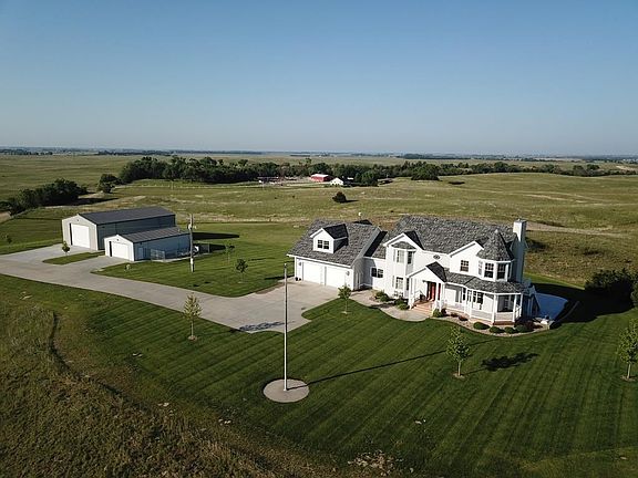 Very Nice Acreage! Exceptional buildings, 60 x 36 insulated, heated & cooled building built in 2016, 40x30 heated building with half bath, fiberglass salt water pool, hot tub & attached heated & cooled garage. Custom built home with many upgrades; wood floors, 9" baseboard throughout, tray ceilings, granite countertops, rec room w/bar, 2 gas fireplaces, office, formal & informal dining and more!