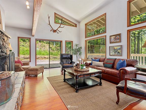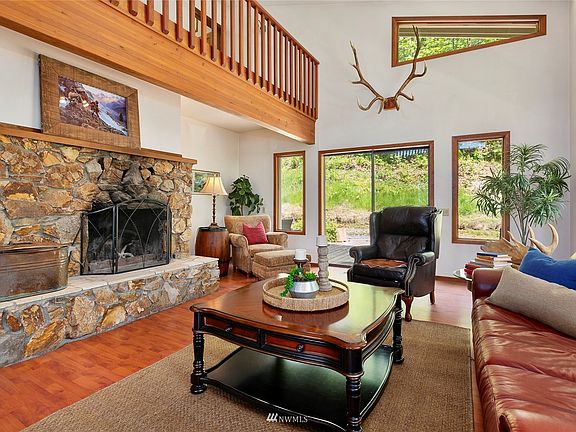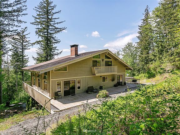 Tucked in the woods on a hill, this 3-level, 4 bedroom home on 4.7 acres has generous living spaces throughout. Peaceful, quiet setting with views from most rooms in the house. Large kitchen with cozy wood burning fireplace, extra large walk-in pantry or home office & rich-toned living room with beautiful stone fireplace & stunning windows to capture the outside-all on the main floor. The entire upper level is the primary suite with additional office space, closets & bath. The lower level features 3 bedrooms, full bathroom, storage & family room with fireplace. Plenty of parking plus a wrap around driveway. Just 20 minutes to Lynden, work & live here & make this your perfect hill-side retreat!