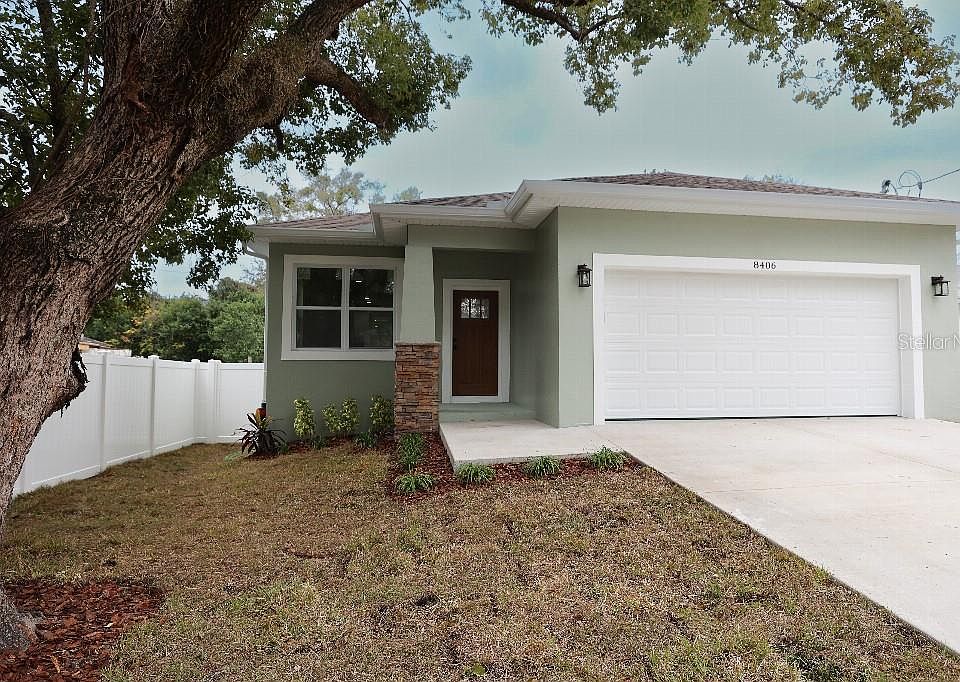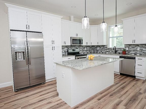 Built in 2023, this 3-bedroom, 2-bathroom single-family home offers modern finishes and a functional layout. The open floor plan includes 9'4" ceilings and luxury waterproof vinyl flooring throughout. The kitchen features stainless steel appliances, shaker-style cabinetry, granite countertops, and a large center island.